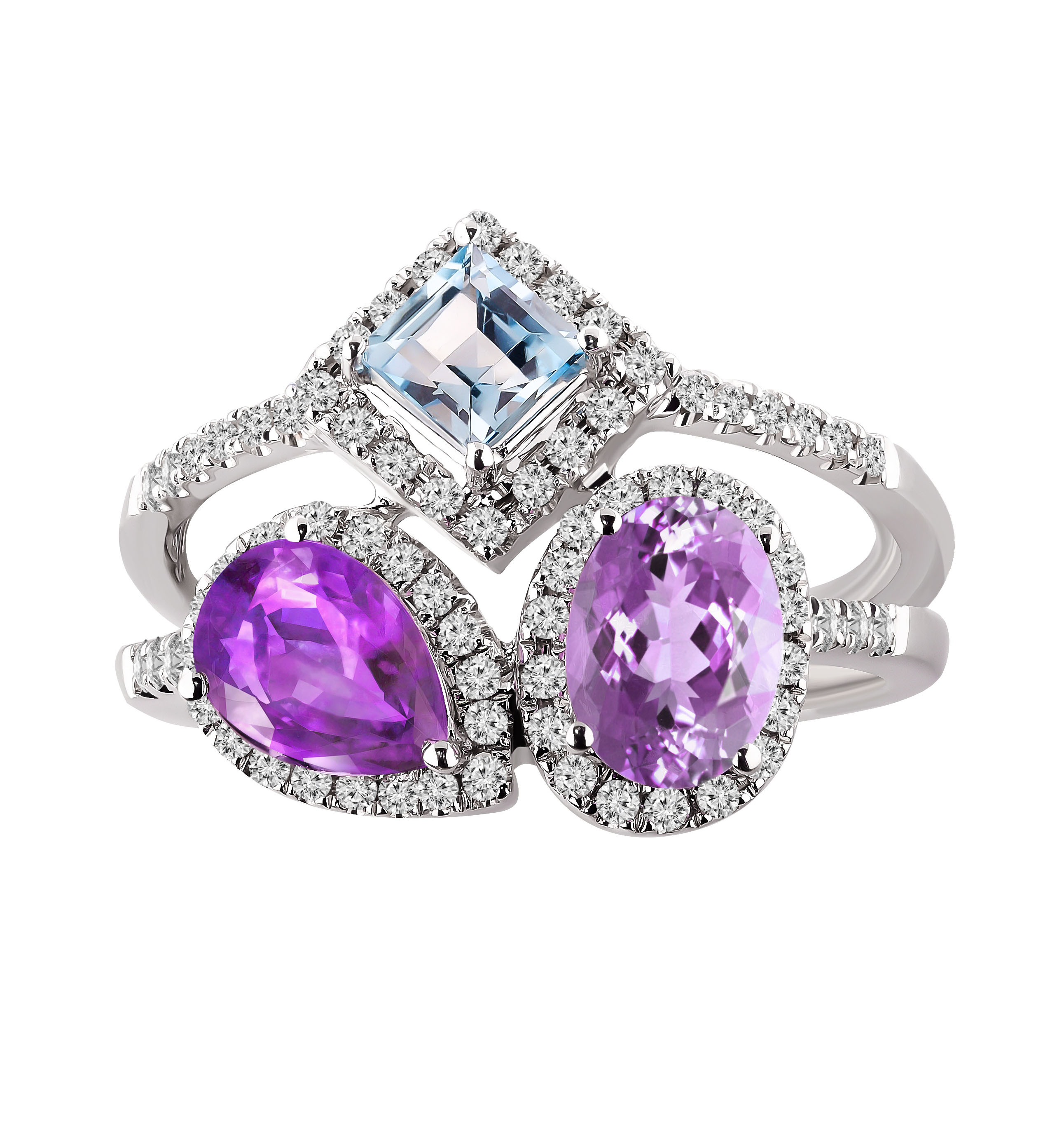 | نوع و وزن جواهرات | برلیان سفید پاک : ۰.۳۹ قیراط.بلوتوپاز.آمیتیس ۲.۵۷ قیراط |