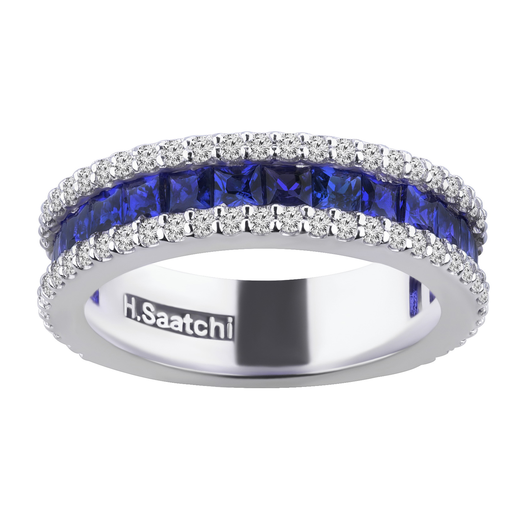A white gold ring, adorned with brilliant stones, its beauty multiplied a hundredfold with sapphires from the heart of nature. From the products of the online jewelry store "Hotef Saatchi." Enjoy online shopping with security and peace of mind. Jewelry fulfills all the needs of life, but a few sweet pieces make it even more delightful!