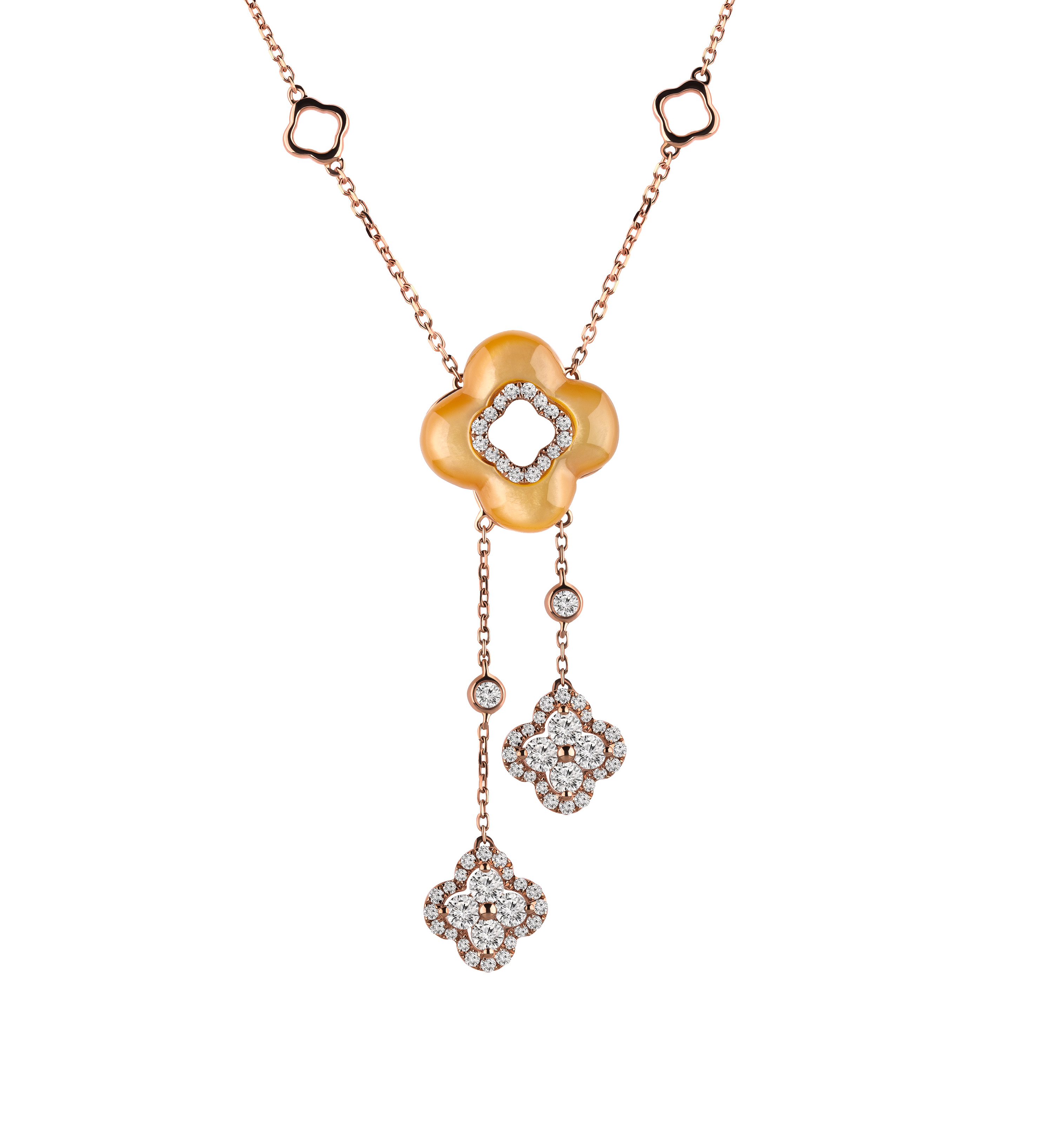 A women's rose gold necklace, adorned with brilliant stones, a special piece of jewelry, full of natural energy... from the products of the online jewelry store, Hatif Satchi. Enjoy online shopping with security and peace of mind. All the necessities of life are love!! But a few pieces of jewelry make it sweeter and more sour!!
