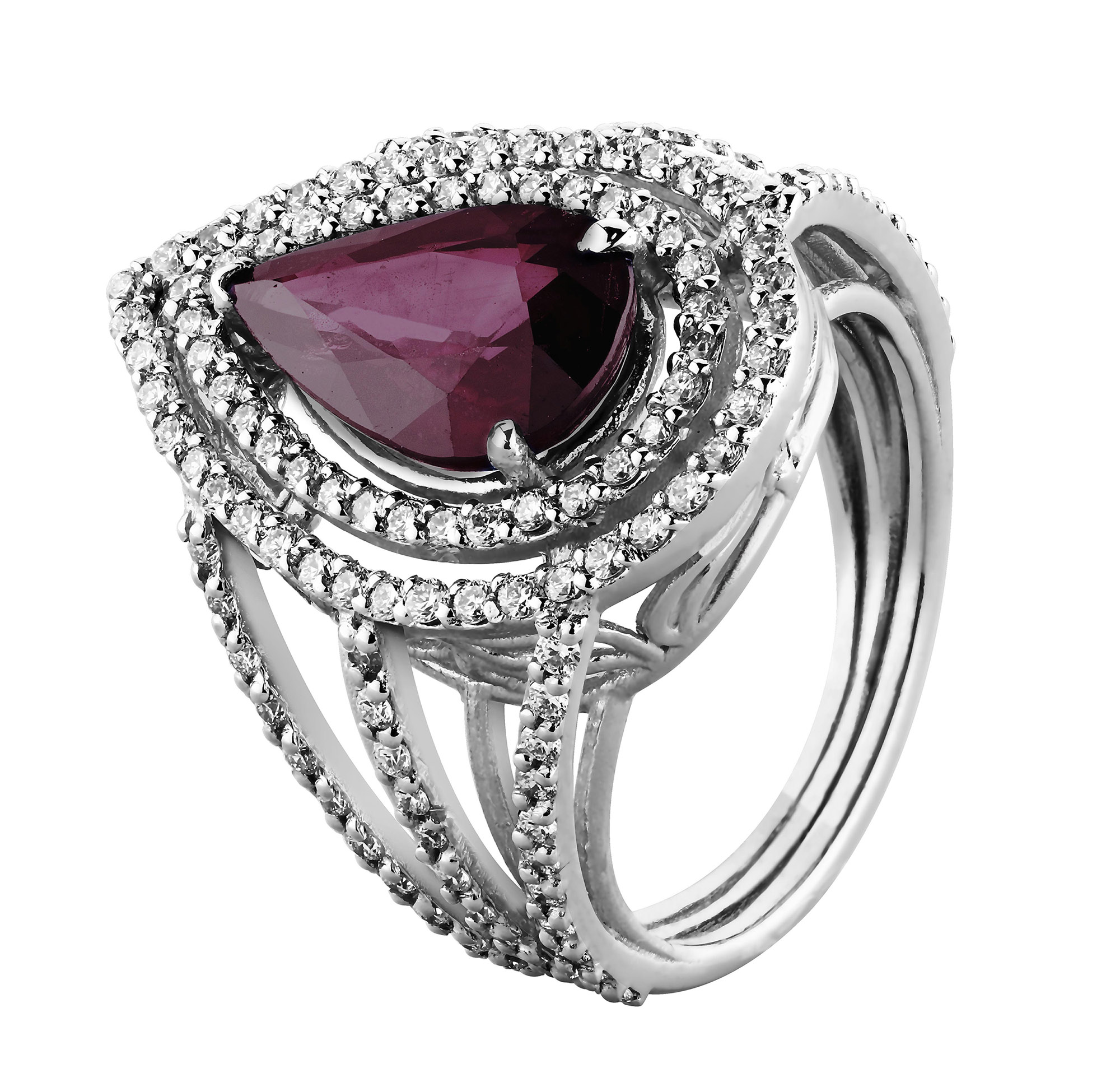| نوع و وزن جواهرات | برلیان سفید پاک ۰.۶۰ قیراط و یاقوت قرمز ۵.۳۵ قیراط |