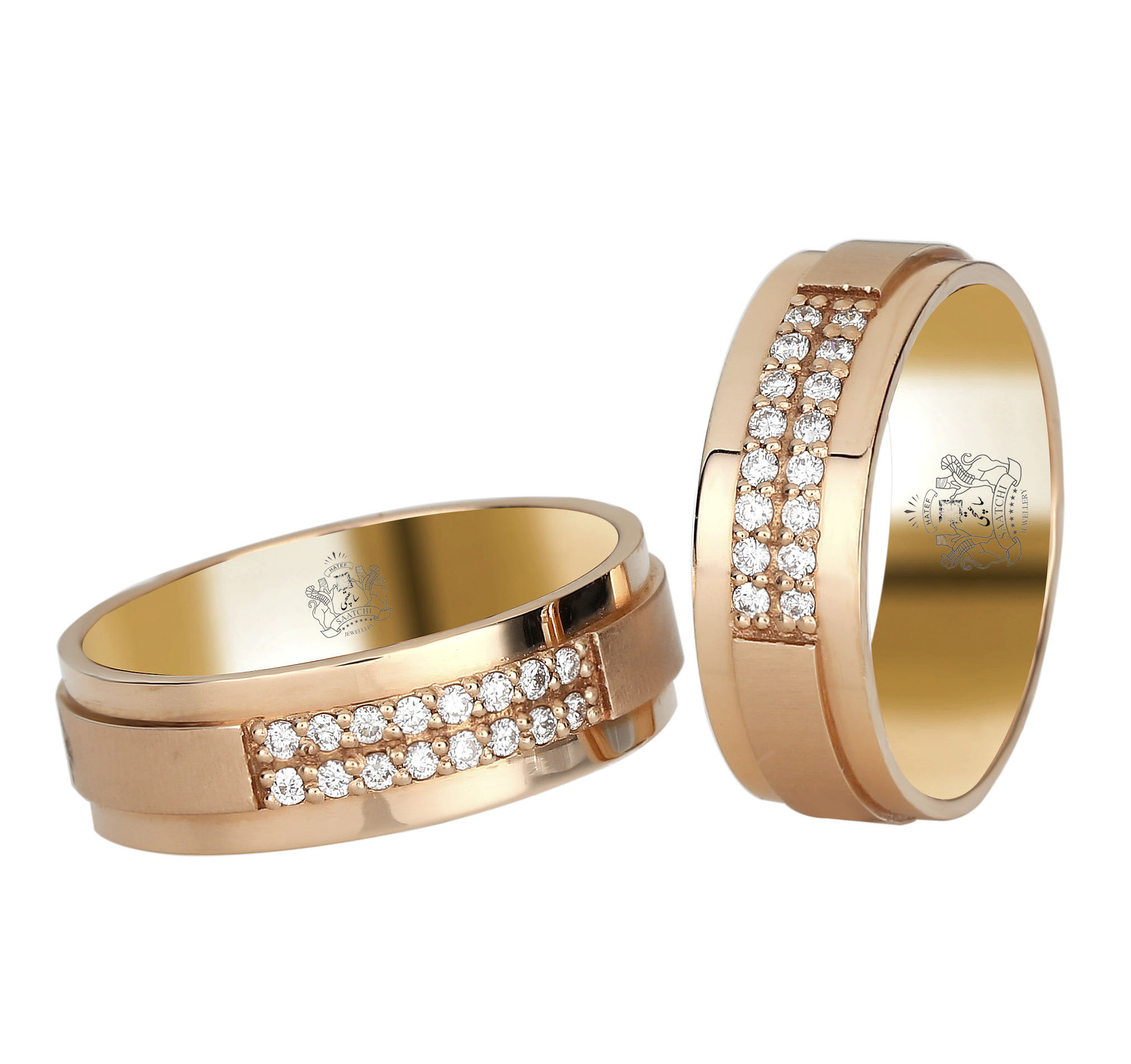حلقه ست زنانه و مردانه طلای رزگلد.کار شده با سنگ برلیان.از محصولات فروشگاه آنلاین جواهرات هاتف ساعتچی.لذت خرید آنلاین همراه با امنیت و آسودگی خاطر.تمام نیاز زندگی عشقه!!ولی چندتا تیکه جواهرات شیرین ترش میکنه!!