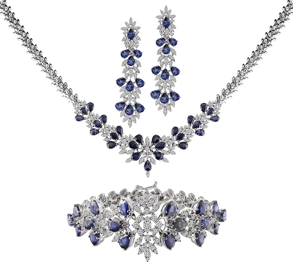 | نوع و وزن جواهرات | برلیان سفید پاک ۲.۶۱ قیراط.یاقوت کبود ۱۵.۶۸ قیراط |